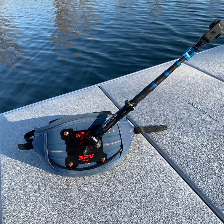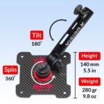 Action camera harness mount designed for wing, kite, and windsurf harnesses, and anywhere a 140 mm carbon plate can be mounted. It is suitable for all soft and hard-shell harnesses.