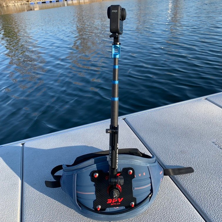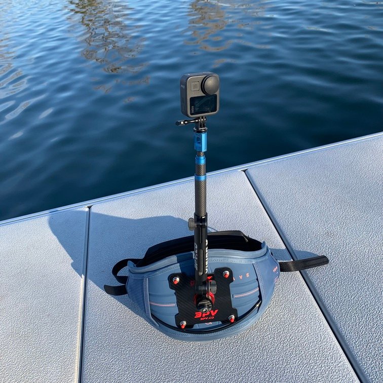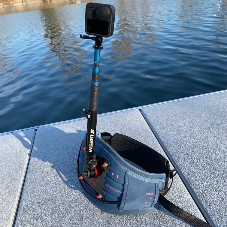 VISION X action cam mount is a complete set with a 80 cm floating telescopic carbon pole. Harness and camera not included